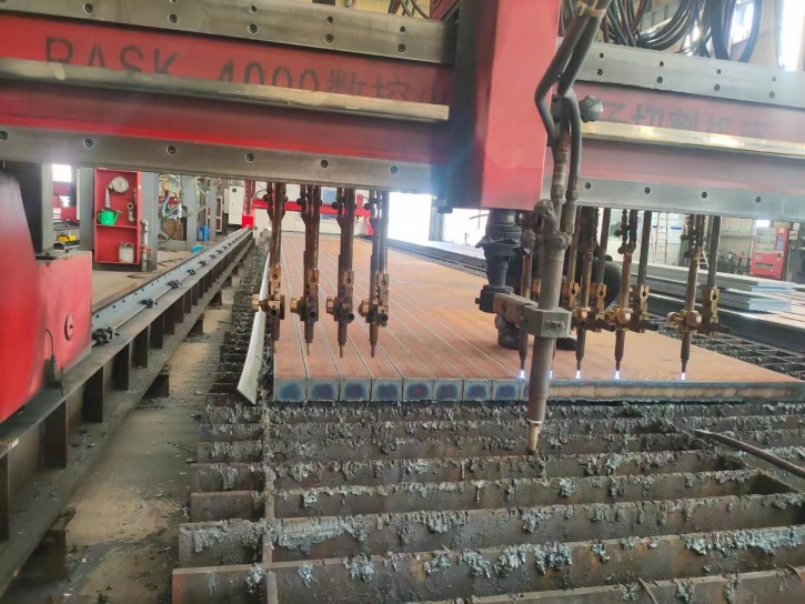 火焰切割是目前应用广泛的钢板切割方法,它是通过使用火焰将钢板局部加热到熔化状态,然后借助高压氧气将熔化的钢水吹走,从而实现钢板的切割。